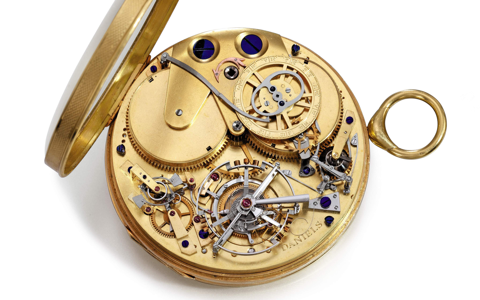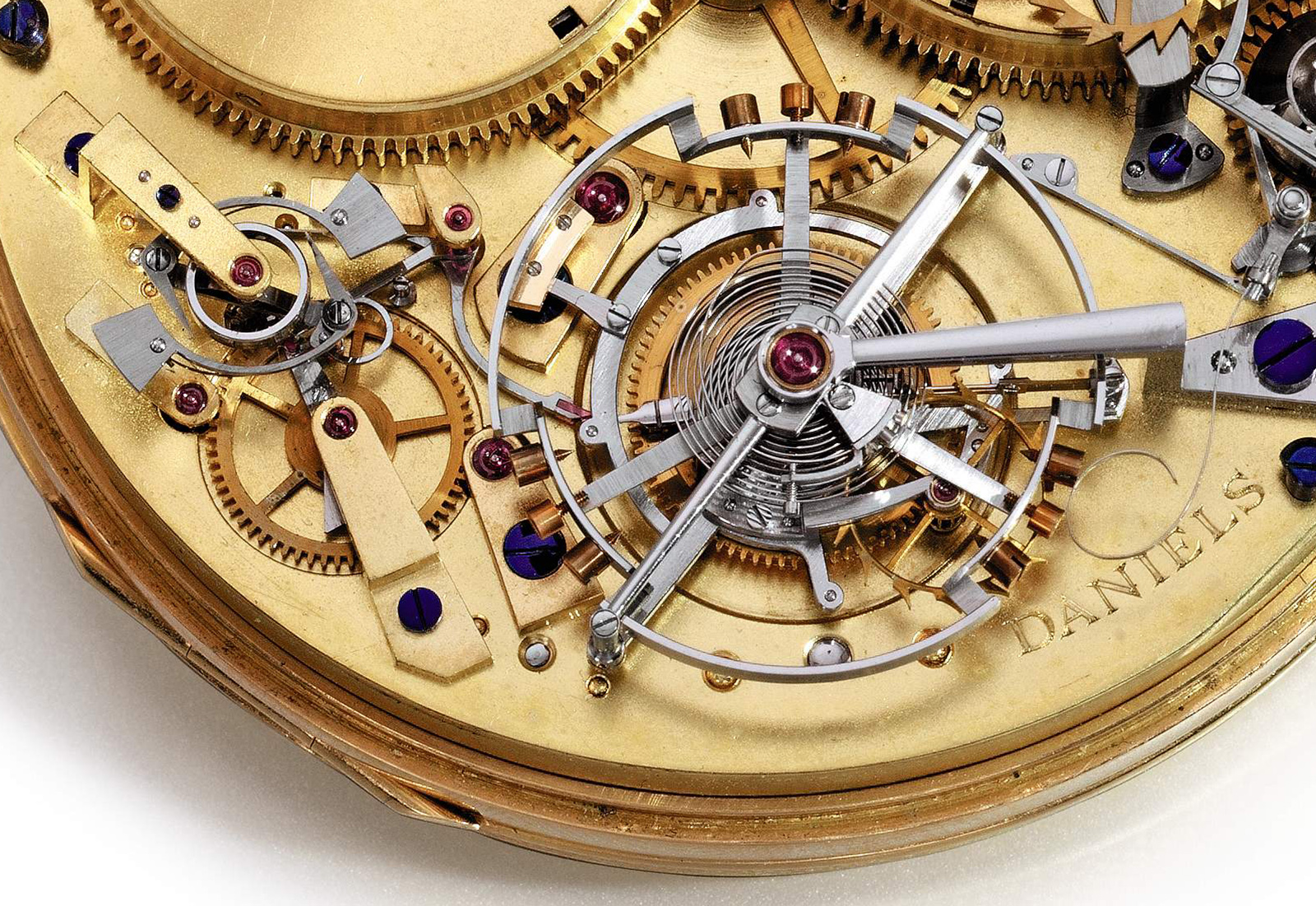 Daniels employed a remontoir in his work only twice – once in this watch, and again in a tourbillon pocket watch with a Co-Axial escapement that remained unfinished at the time of his death.