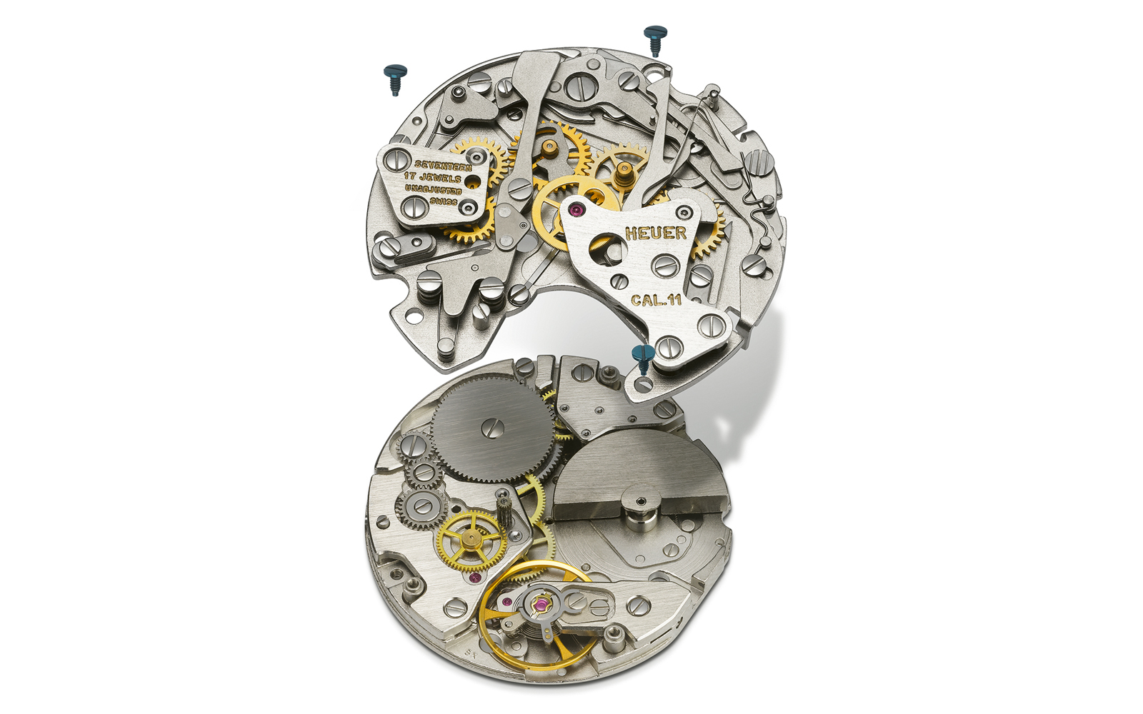 The eccentric self-winding weight is small and offset, unlike the half-movement rotor. Famously used by Universal Genève, Patek Philippe, and Heuer in the Calibres 11 and 12, this design is commonly referred to as a micro-rotor.