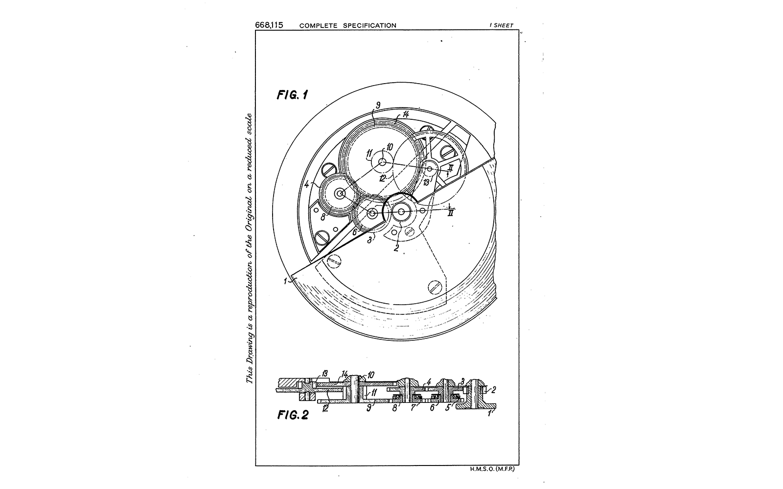 The first mass produced self-winding movement for a wristwatch was made by the English watchmaker John Harwood who patented his design in 1923. It was unidirectional winding system with a centrally mounted weight that oscillated through an arc of about 130 degrees, limited by bumpers at either end of its weight. (Image: The British Museum)