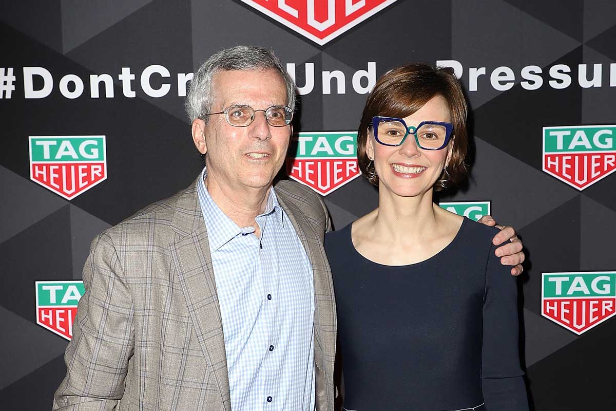 Founder/Owner OntheDash, Jeff Stein (left), and Heritage Director of TAG Heuer, Catherine Eberlé-Devaux (right) attend the Museum in Motion TAG Heuer Grand Opening Party on February 15, 2018 in Miami, Florida. (Photo by John Parra/Getty Images for TAG Heuer )