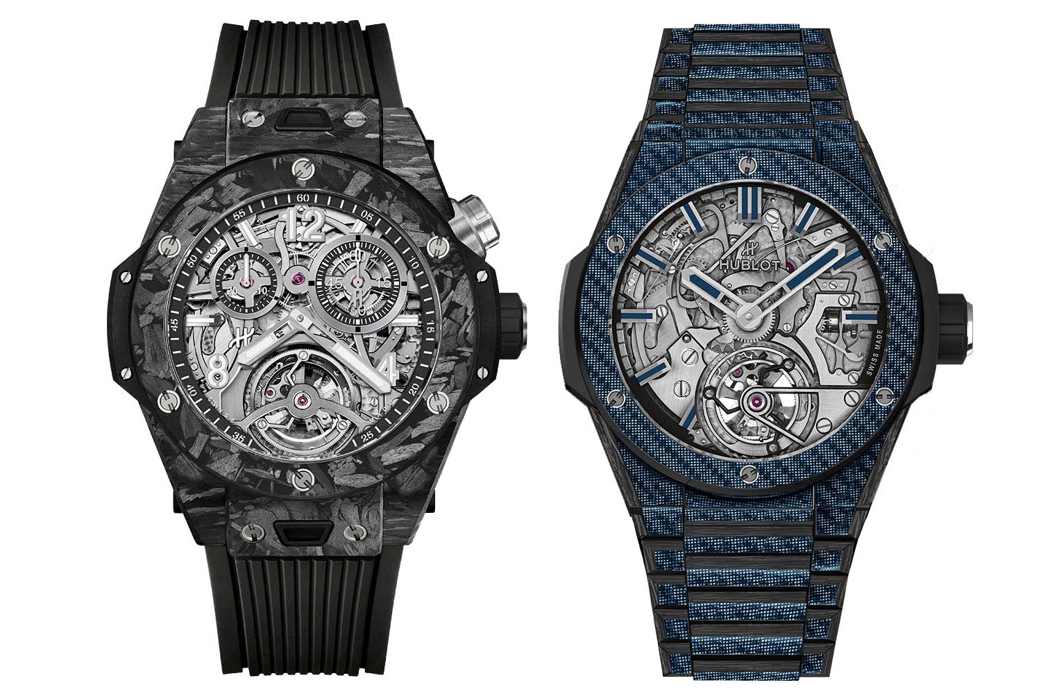 2025: Celebrating Big Bang 20th Anniversary, Hublot presents the Big Bang Tourbillon Chronograph Cathedral Minute Repeater in black frosted carbon fiber and Blue Texalium