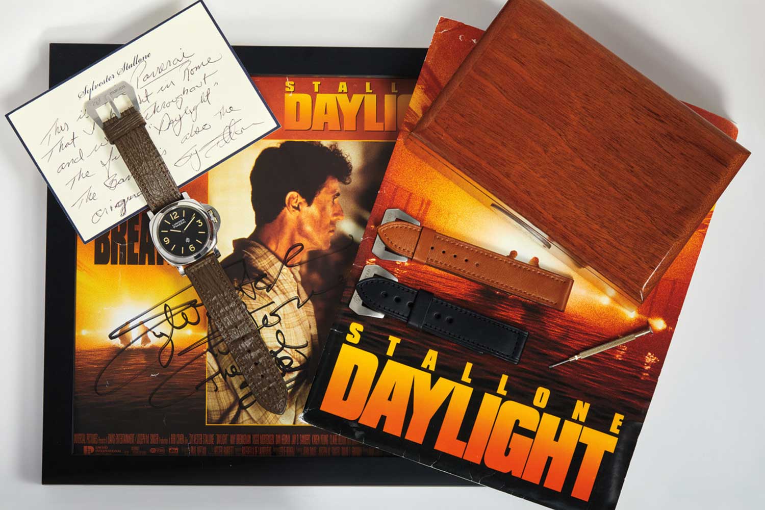 Panerai exploded into popularity when Sylvester Stallone saw the watches around 1994 while in Italy and decided to wear a Ref. 5218-201/A in his film Daylight, which was shot in Rome. This timepiece was auctioned in 2020 by Phillips and fetched a healthy 214,200 U.S. dollars. He famously became a one-man Panerai Luminor evangelist, gifting it to friends and even telling them about this legendary Italian military brand. All the watches that read “Slytech” were made.