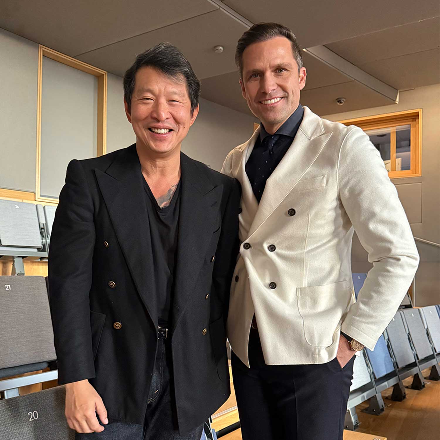 A behind-the-scene moment during the Paris presentation with Wei Koh and Gregory Kissling, CEO of Breguet