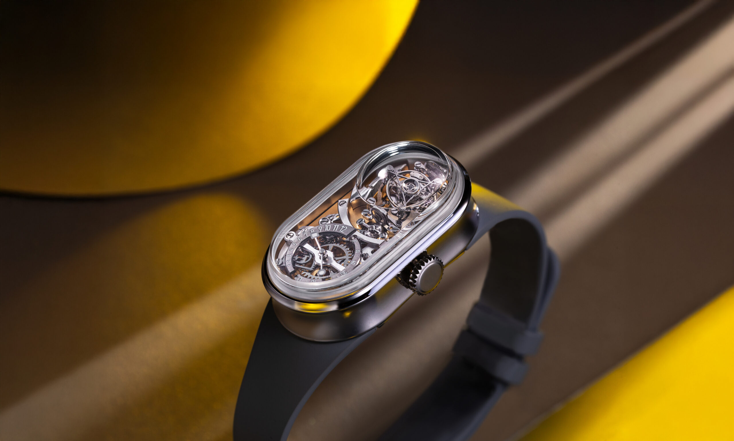 This watch is a true technical statement, featuring a bi-axis tourbillon, retrograde jumping hours and retrograde minutes, all ingeniously packaged within a compact, capsule-shaped case — making it the smallest bi-axis tourbillon wristwatch ever created. And all this innovation comes at a starting price of just USD 32,000, a level of accessibility rarely seen for such complexity.