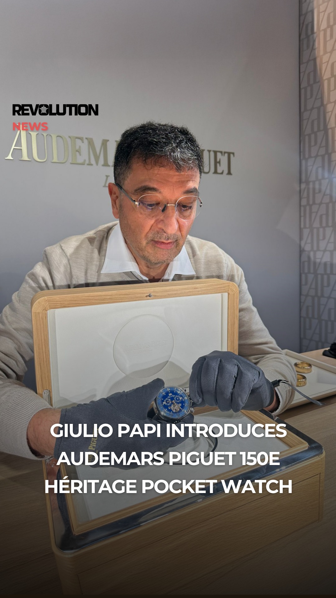 The @audemarspiguet Audemars Piguet 150th Heritage Pocket Watch with a Universal Calendar is based on the Calibre 1000 in the RD#4 which combines a grande et petite sonnerie, minute repeater, split-seconds flyback chronograph, flying tourbillon, and a semi-Gregorian perpetual calendar. Its scheme of controls has been skilfully reworked for ease of use in a pocket watch. All functions can be controlled intuitively via 3 crown pushers and 2 push-piece correctors. The crown pusher at 2 o’clock starts and stops the chronograph. Rotating it switches between silence, petite and grande sonnerie mode and here, Giulio Papi is demonstrating a new pull function that triggers the minute repeater.