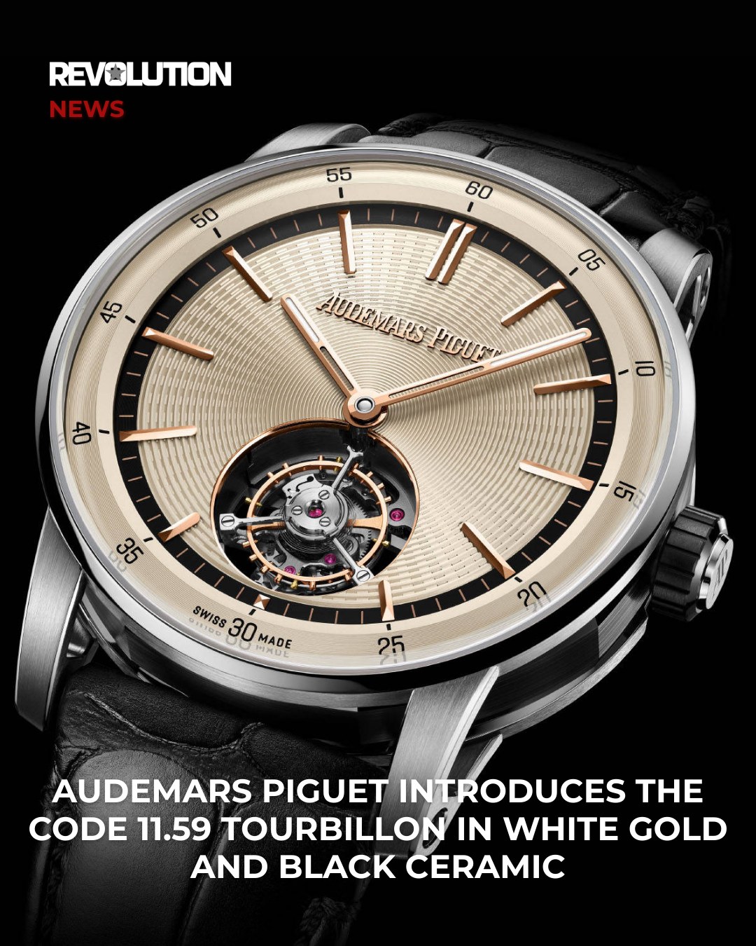 With @audemarspiguet Audemars Piguet set to return to Watches & Wonders this April, the Le Brassus watchmaker has begun its run-up to the fair with a slate of noteworthy releases, includingupdates to core collections, like this new Code 11.59 Tourbillon. Executed in a tasteful two-tone case in white gold and black ceramic, paired to a warm ivory dial finished in a guilloché pattern. Audemars Piguet approach to two tone is sophisticated. Rather than combining two shades of gold, the brand takes the opposite route by pairing ceramic, a decidedly modern material, with traditional white gold. The result is striking. The black ceramic case middle works naturally with the white gold case, and beyond the visual contrast, the two tone construction helps articulate the complex architecture of the Code 11.59 case, a quality that is often overlooked.