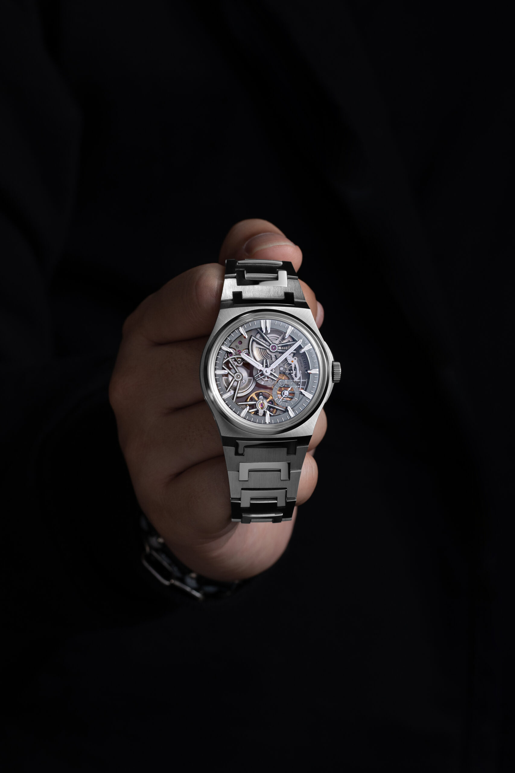 As the plans to launch the Révélation firmed up, I approached de Roquemaurel to pitch him a collaborative watch. Understanding what he had been through, we thought a version of the Révélation — one that expressed resilience and optimism even in dark times — would be apt. So we decided to start working on the timepiece that would become the Czapek Antarctique Révélation Spectrum. The idea was to illuminate the singular skeleton architecture of this watch with white Super-LumiNova so that, in daylight, it might appear to be a normal skeleton version of the Antarctique, but in ambient light or at night, the visual signature of the movement would be on display in a light show. Even better, because the baseplate of the movement featured a stealthy sandblasted surface, the contrast between light and darkness would be maximized.