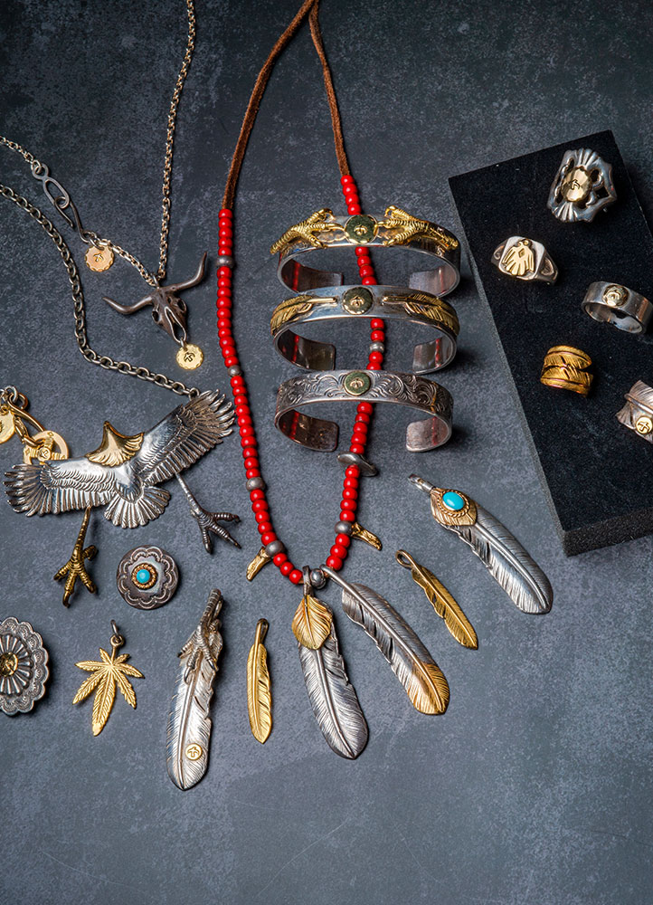 Walking into the shop presided over by Mito-san, Goro’s daughter-in-law, you immediately understand you are in an epicenter of powerful spirituality. You cannot simply walk in and select what to buy. Instead, you must be invited to purchase things in a hierarchical order, depending on your relationship with the store. It can take years before you are offered the chance to purchase an extra-large, gold-tipped feather. And during that time, you need to show up consistently. You must demonstrate, affirm and reaffirm your love for Goro’s. On average, it takes a decade before you are offered a full gold, large-sized feather — or perhaps the most coveted piece of all, an eagle medallion. You would have to be someone like Eric Clapton to purchase a full gold eagle. Devotees of Goro’s include John Mayer, Ron Wood, Hiroshi Fujiwara, and legions of young men who make the pilgrimage to Harajuku every day for a chance to purchase just one item. As they stand solemnly in line, each one wears feathers, arrowheads, or a rare eagle pendant around their neck — arranged in a way that both honors the prevailing Goro’s tradition and expresses their own inchoate individuality.