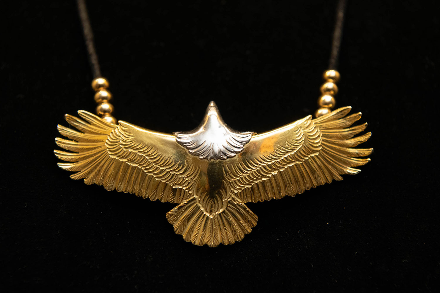 - Goro’s jewelry designs comprise of icons featuring arrowheads, birds, buffalo skulls, the sun, feathers, and Goro’s most coveted symbol, the eagle. Photo Credit: DELTAone International