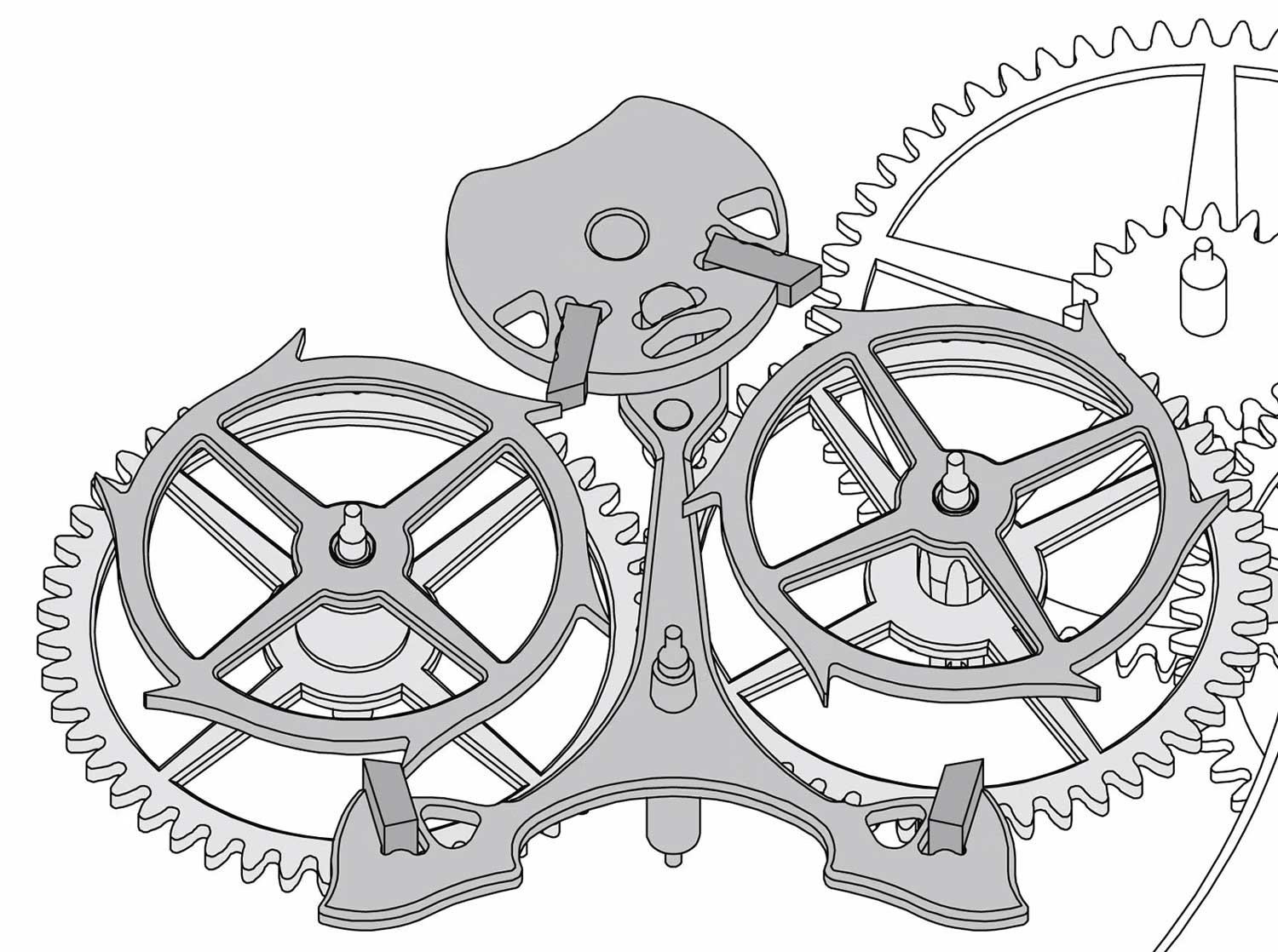 The second configuration is such that the twin escape wheels are mounted on mating gears, driven by the gear train. However, the superimposed wheels create thickness and result in high inertia. Both setups require highly optimised engineering to function reliably, making them impractical for the cost and durability constraints of industrial-scale manufacturing. Even if modern techniques like LIGA and high-precision CNC machining allow components to be manufactured with sufficient accuracy, assembly and adjustment remain labour-intensive, making large-scale production seem a pipe dream.