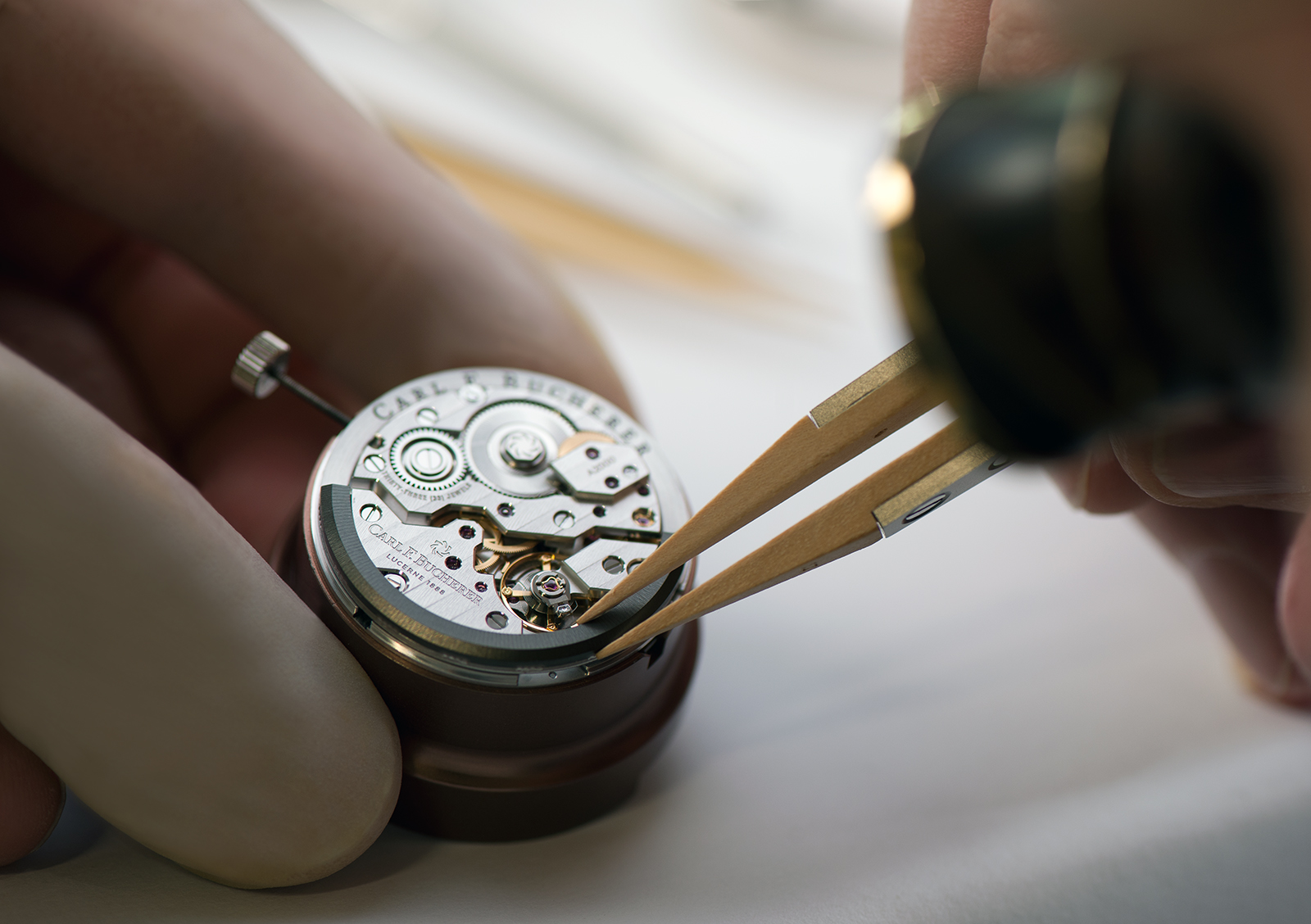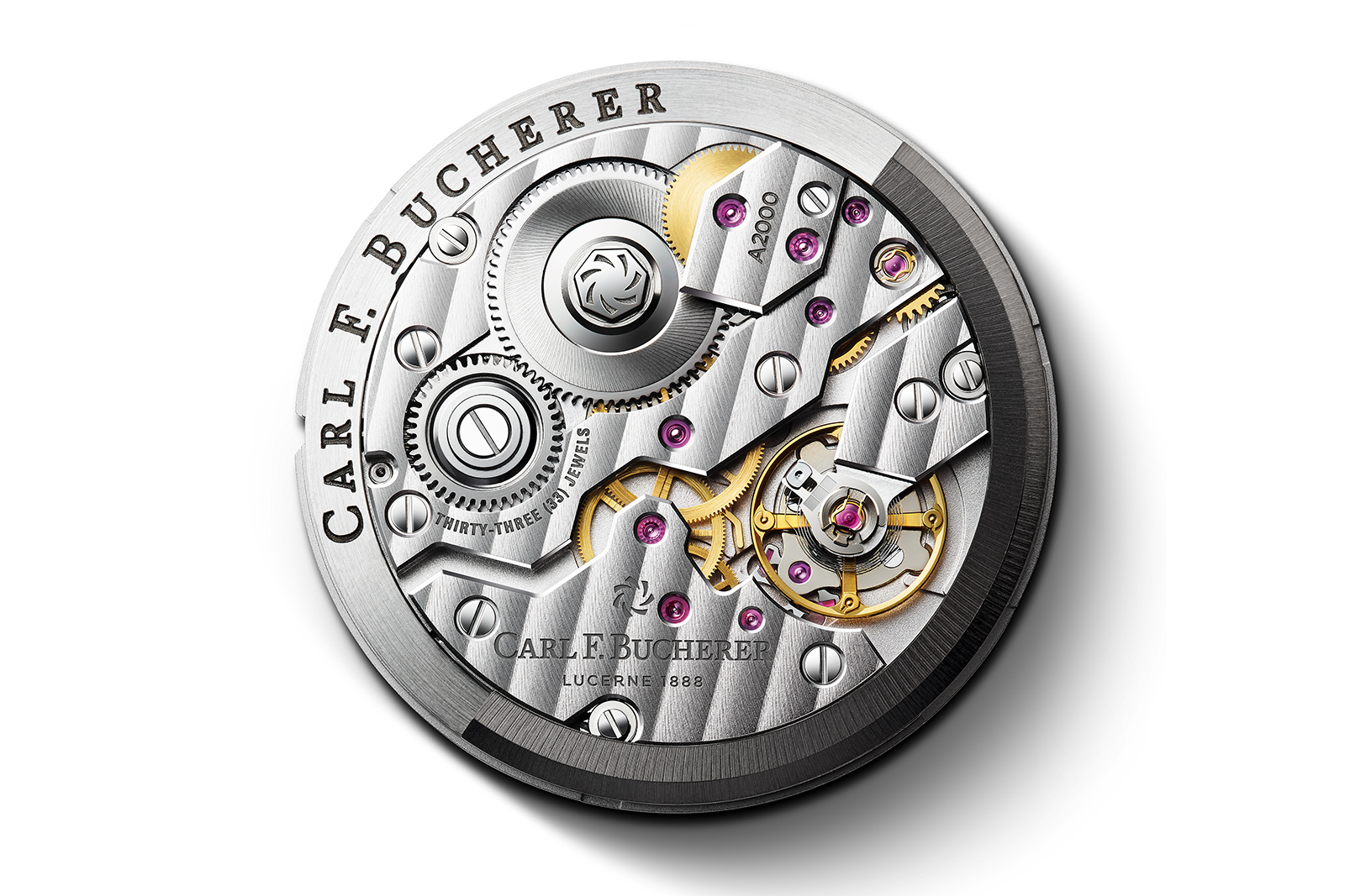 In Carl F. Bucherer’s movements, the oscillating mass is made of tungsten and mounted on a ring. Beneath it sits another ring with internal teeth that mesh with the first gear (with a shock protection system) in the automatic winding train