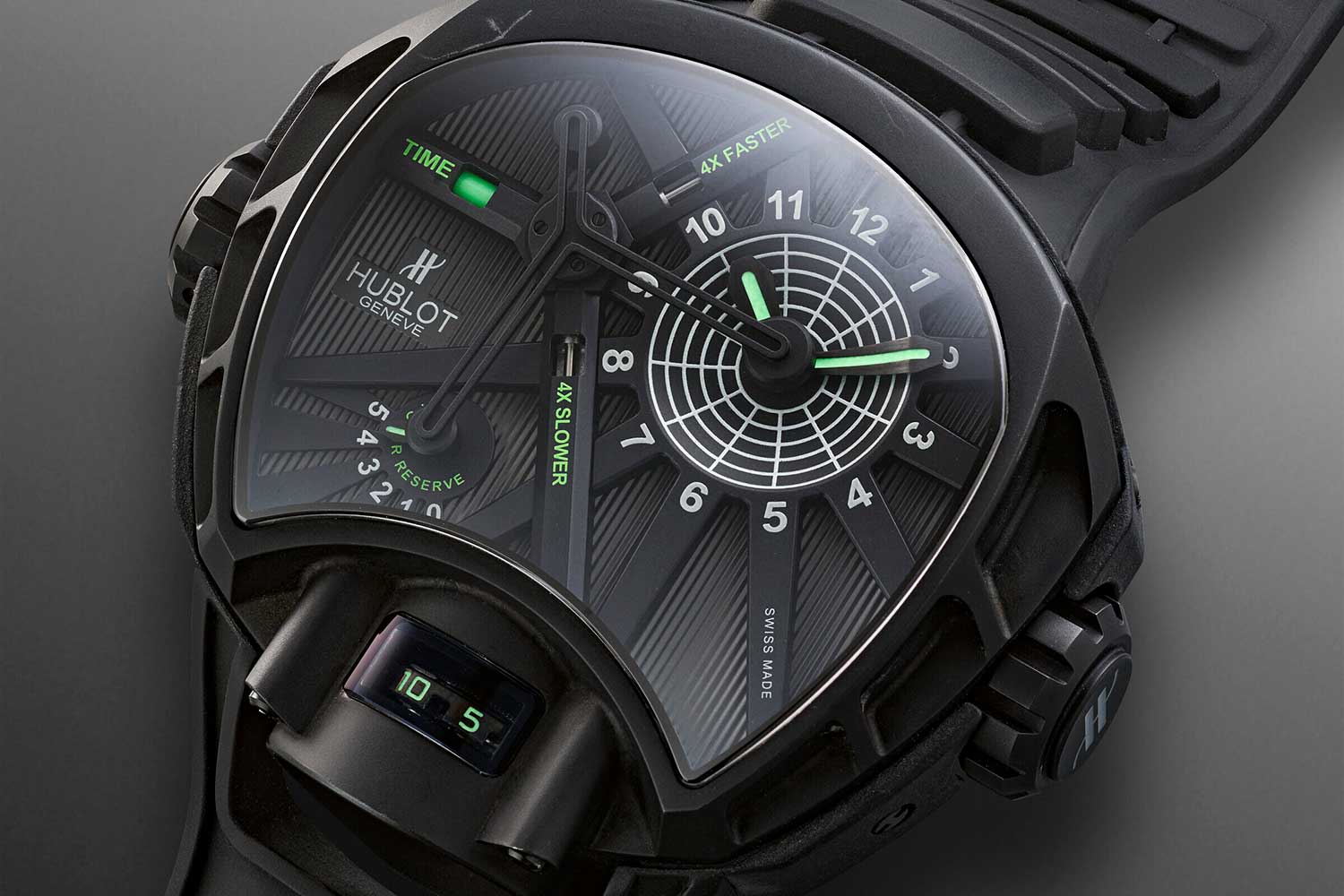 In its slowest setting, an hour in real life would pass as just 15 minutes on the dial. In its fastest, the hands would whirl through four hours in the same span. Yet the watch kept track of true time internally, and the moment the crown was returned to its neutral position, the hands would automatically re-synchronize, catching up or falling back to the correct display. It was, in essence, a mechanical simulation of perception — a watch that acknowledged that time does not always feel the same to everyone.