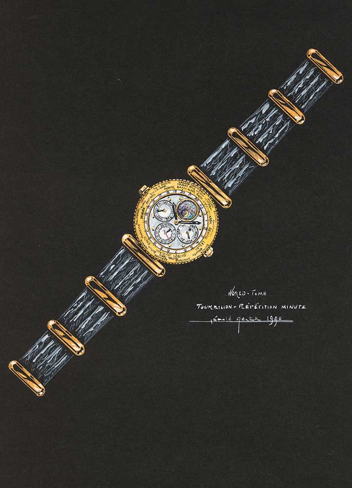 With his own manufacture, Genta started to experiment with innovative use of shapes, unique case constructions, and striking bracelets that made his watches truly distinctive. Evelyne emphasizes that Genta was a pioneer in reintroducing complex features like perpetual calendars, retrogrades, minute repeaters, and grand sonneries in the wake of the Quartz Crisis. Starting with just seven craftsmen, his workshop flourished, eventually expanding to a peak of 250 artisans. While they crafted timepieces under the Genta name, they also produced watches for other prestigious brands. Throughout his illustrious career, Genta’s client roster was impressively varied. He began working with Audemars Piguet in 1953 but soon expanded to American brands like Benrus, Hamilton, and Bulova. He also contributed to some of the most eminent designs from Rolex (with the King Midas), Cartier, Chaumet, Fred Paris and Van Cleef & Arpels. Evelyne notes that at one point, all of Graff’s watches were produced in Genta’s workshop, underscoring the extraordinary breadth and lasting impact of his contributions to fine watchmaking.“Every design was a tangible reality, not just a vision. If the crown needed to be a millimeter, he painted it precisely that,” Evelyne explains. “Gerald’s meticulous scaling ensured that each design was production-ready. Many designers dream up unattainable creations, but his were crafted to exacting standards.” He put together an exceptional team, with Ernest Fischer managing cases, bracelets, and dials, while Pierre-Michel Golay focused on movement creation. “I used to call them the Three Musketeers, because that’s exactly what they were.”